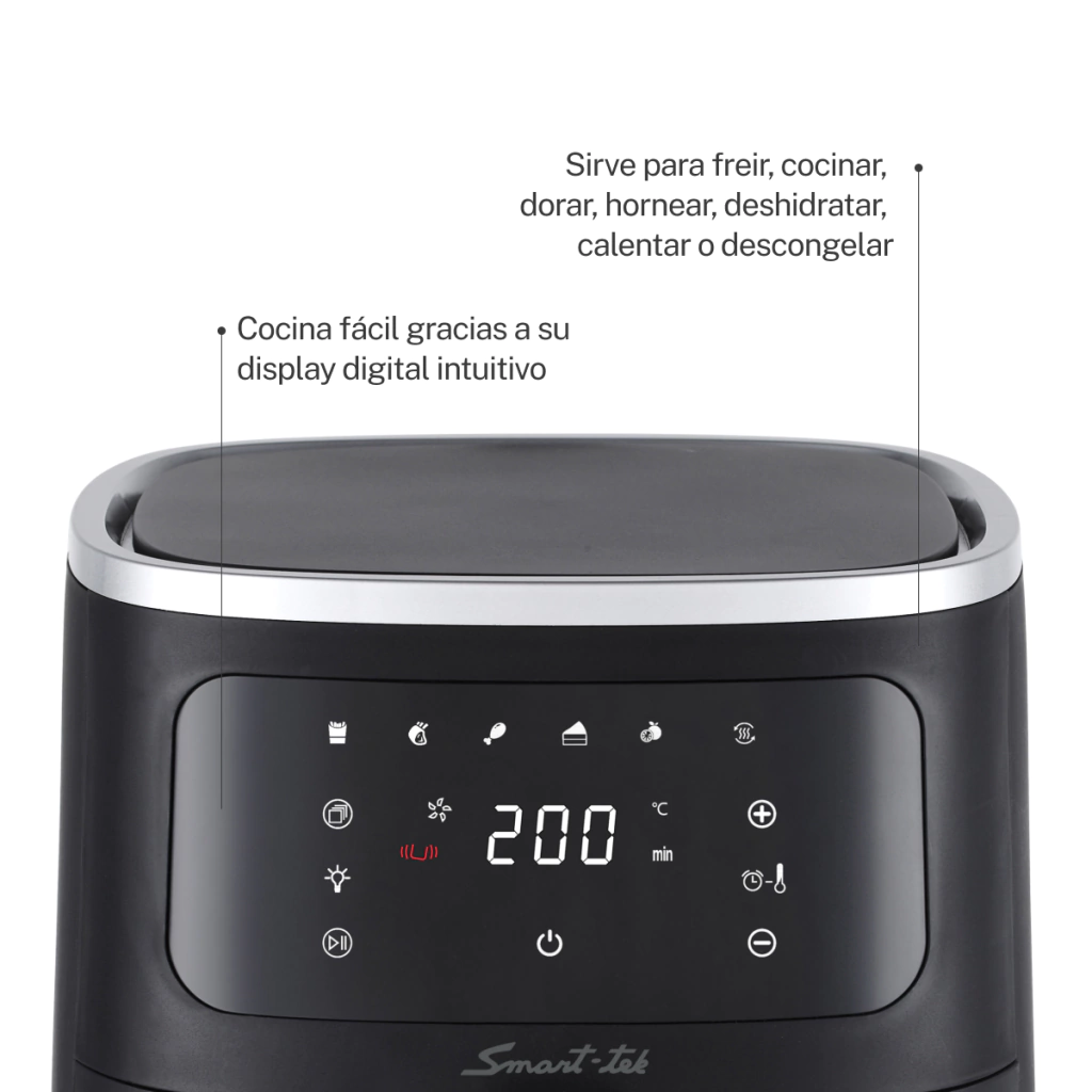 ¡Descubre la Freidora De Aire Air Fry 6Lts AF2060, el electrodoméstico que transformará tu forma de cocinar! Con tecnología de circulación de aire caliente, podrás disfrutar de comidas crujientes y deliciosas, reduciendo el uso de aceite hasta en un 85%.