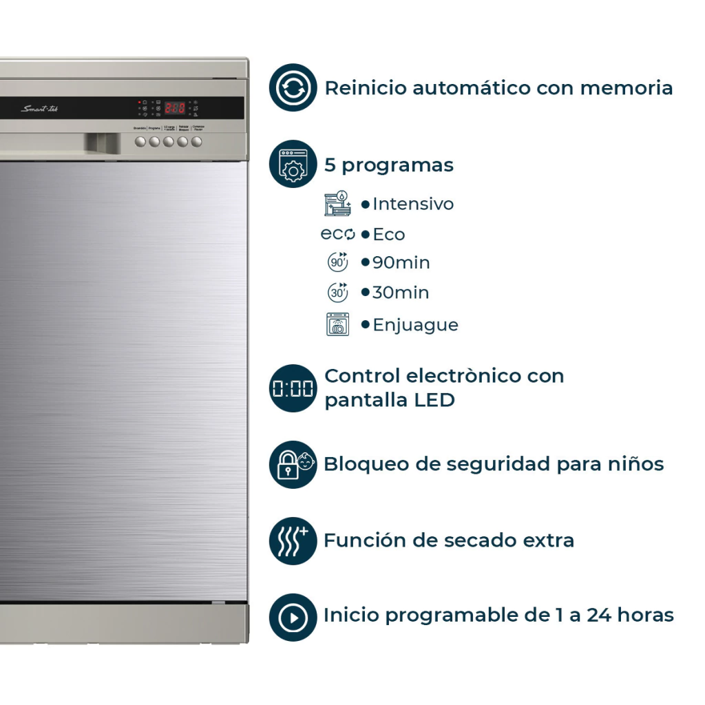 Dejá de preocuparte por el lavado de platos y disfrutá de más tiempo para vos con el nuevo lavajillas de Smart-Tek. Con una gran capacidad, es el electrodoméstico perfecto para familias y quienes disfrutan de recibir amigos en casa.